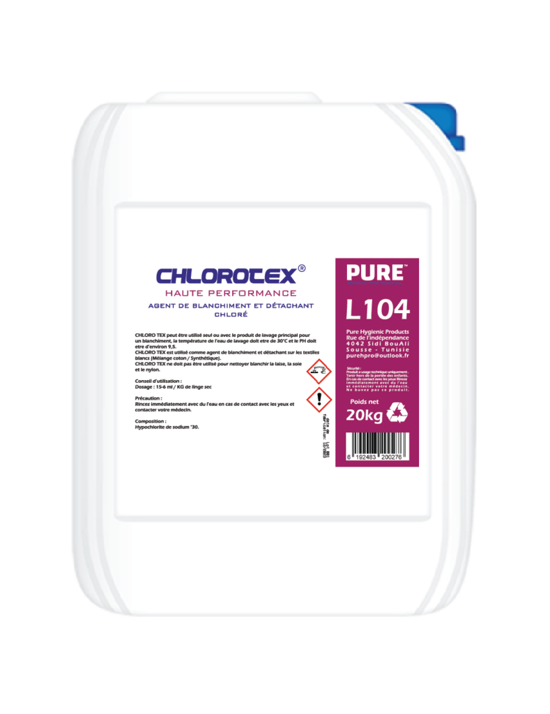 CHLORO TEX est utilisé comme agent de blanchiment et détachant sur les textiles blancs (Mélange coton / Synthétique).
