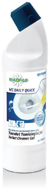 DAILY QUICK WC , détergent en gel à base d’acide fort pour la désinfection et le nettoyage des cuvettes et urinoires dans les espaces sanitaires, pour une utilisation périodique. Il permet d’éliminer rapidement et complètement les dépôts de tartre, les taches et autres résidus.
