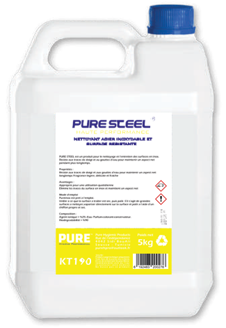 PURE STEEL est un produit pour le nettoyage et l’entretien des surfaces en inox. Résiste aux traces de doigt et au gouttes d’eau pour maintenir un aspect net pendant plus longtemps.